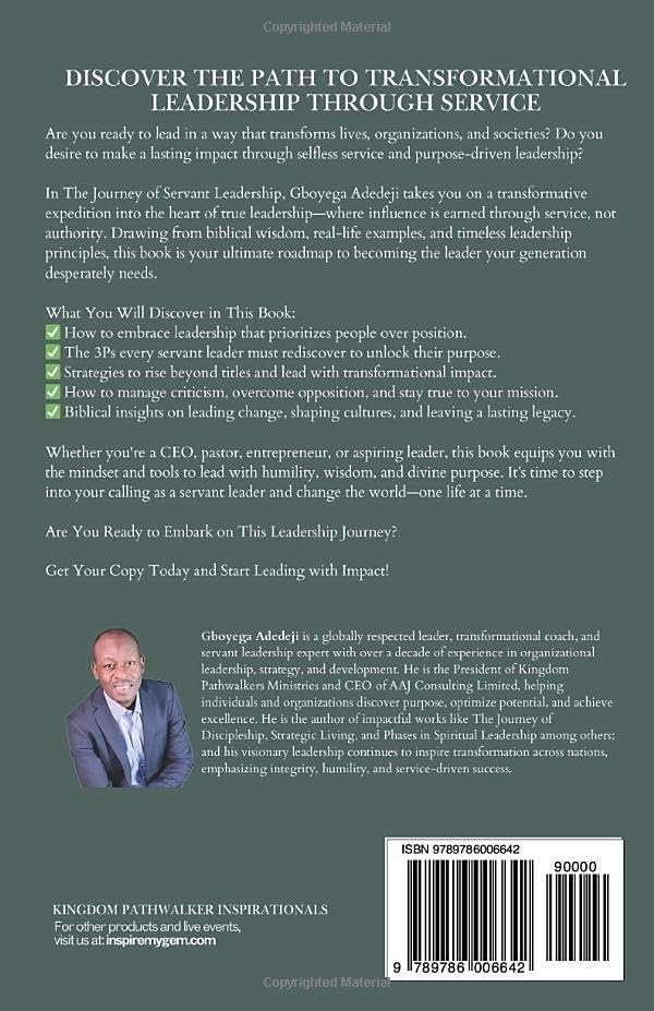 In a world where many chase authority without understanding service, this book calls you back to the heart of leadership that transforms lives and inspires lasting change. Rooted in biblical truth and relevant for today’s fast-paced world, The Journey of Servant Leadership redefines what it means to lead effectively—with empathy, vision, and courage.