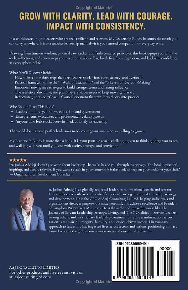 Leadership is one of life’s greatest callings—and toughest journeys. Whether you’re a CEO, pastor, entrepreneur, teacher, or emerging leader, the path can often feel lonely, confusing, or exhausting. That’s why Joshua Adedeji wrote My Leadership Buddy — your trusted companion and coach for everyday leadership wins.