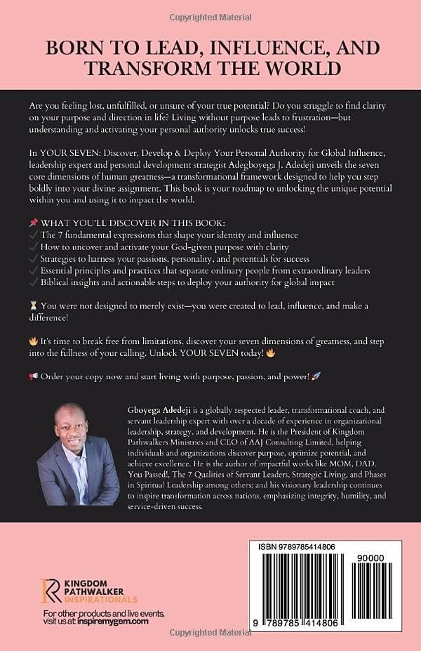 In Your Seven, renowned leadership strategist and personal growth mentor Joshua Adedeji unveils the seven foundational pillars that shape every person’s destiny: